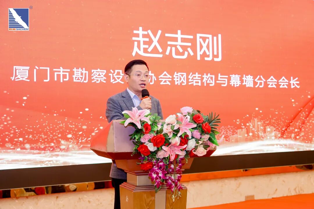 •凝聚共识,携手共进:在广东新展新材料新春客户答谢晚宴上,赵志刚总经理受邀出席并发表致辞。他首先对新展胶业对厦门代表团的热情接待与周到安排表示衷心感谢,高度肯定了新展作为行业标杆企业的责任与担当。面对行业变革,他呼吁业界同仁坚守初心、抱团取暖,并表示协会将继续发挥桥梁纽带作用,进一步深化厦穗两地交流,通过资源互通与平台共建,共同推动门窗幕墙行业的高质量发展。